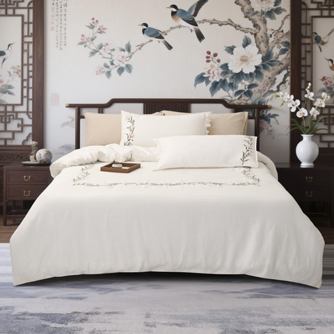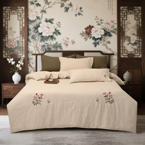 Cloudland, diseño personalizado, Premium, 4 Uds., juego de cama de lino, bordado a mano, estándar, suave y cómodo, venta al por mayor